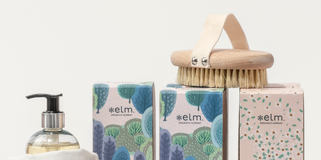 Gled verten med ren økologisk velvære fra Elm Organics - produktene er pakket inn og klare til å gis bort.