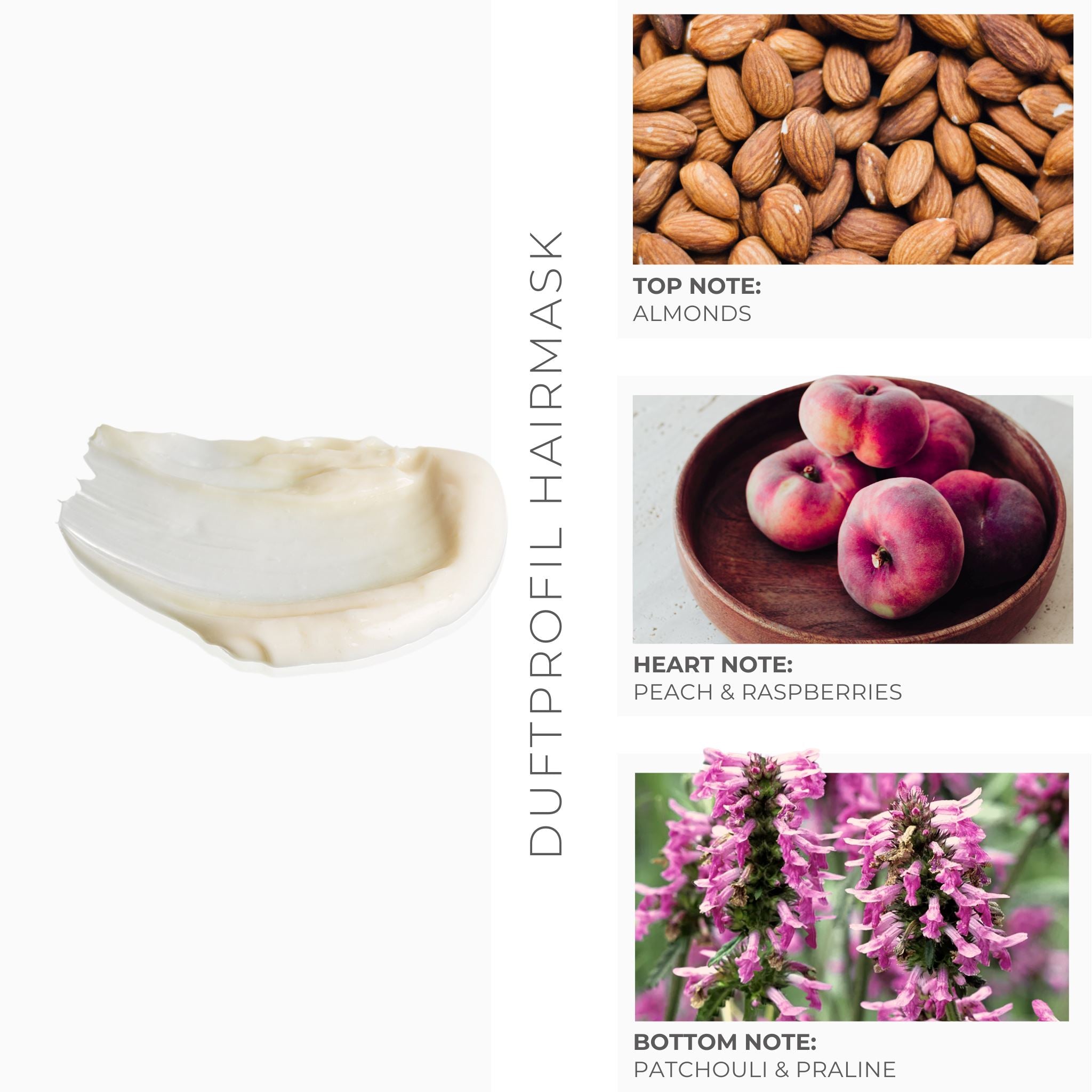 En reparerende, genopbyggende og nærende hårmaske, der genopbygger hvert hårstrå. Den omhyggelige sammensætning af styrkende botanisk keratin og quinoaprotein, samt nærende økologisk sheasmør giver effektiv, dyb og varig næring til håret.