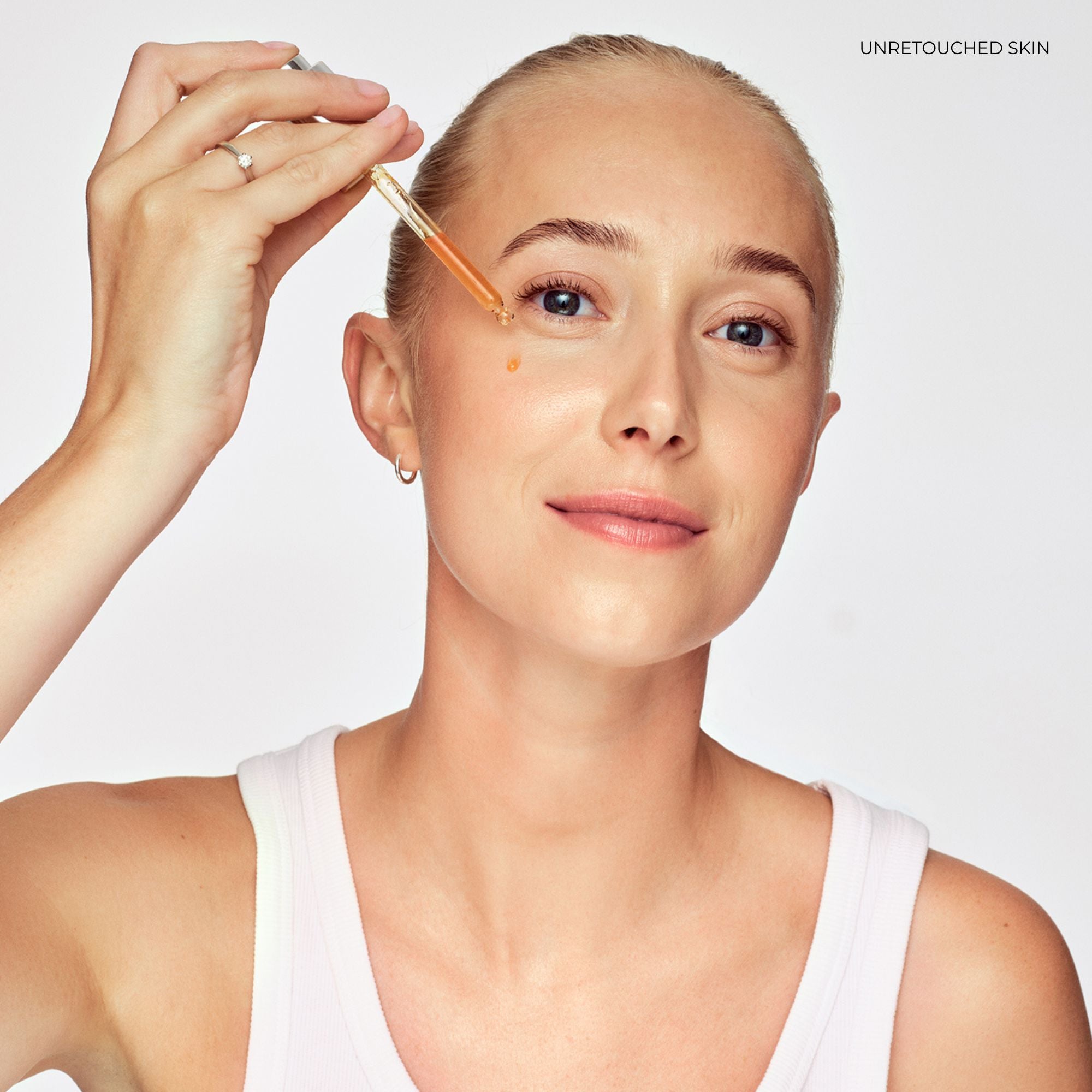 Rist flasken før bruk slik at olje- og vannfasen blandes og formelen aktiveres. Påfør noen dråper serum, massér det godt inn og la huden absorbere den næringsrike, lette formulaen.