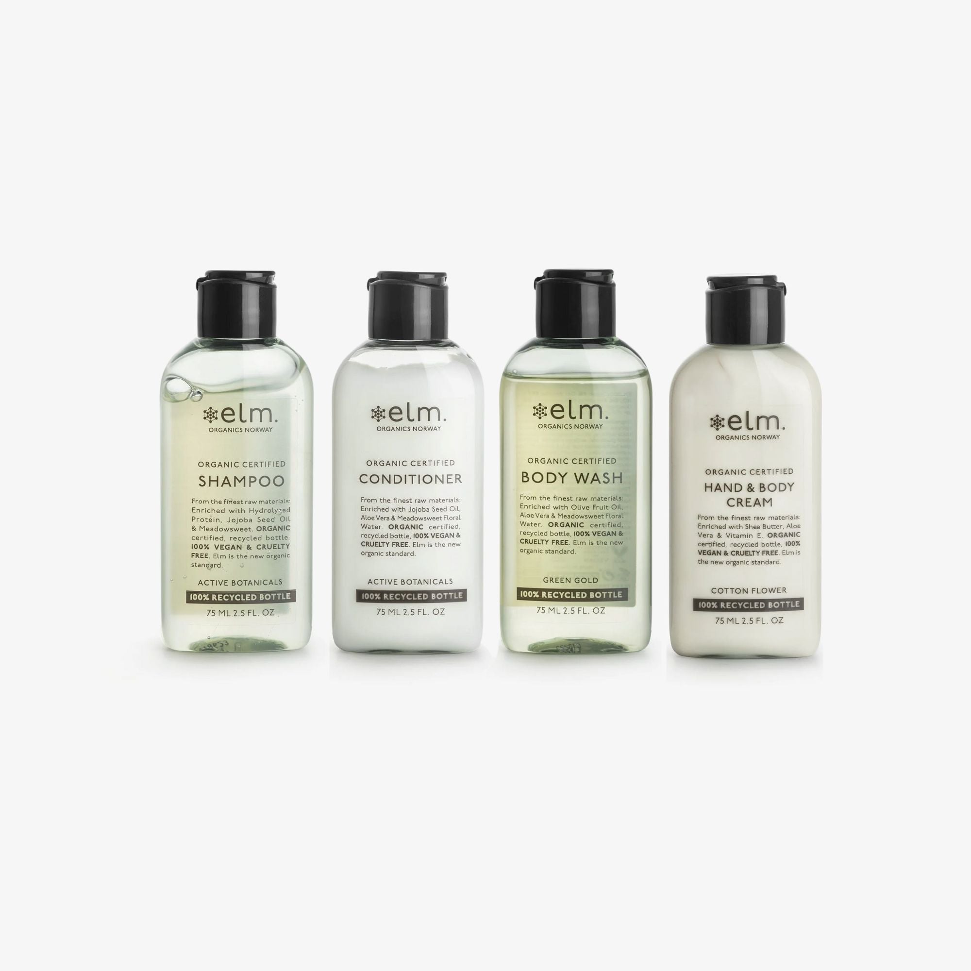 Tag den prisvindende pleje fra Elm Organics med dig, uanset hvor du er. Vores Travel Kit indeholder økologiske favoritter i praktiske rejsestørrelser på 75 ml, i en eksklusiv Elm toiletmappe. Sættet indeholder shampoo, balsam, shower gel og hånd- og kropscreme - perfekt til komplet hud- og hårpleje, uanset om du skal til træning eller rejser.