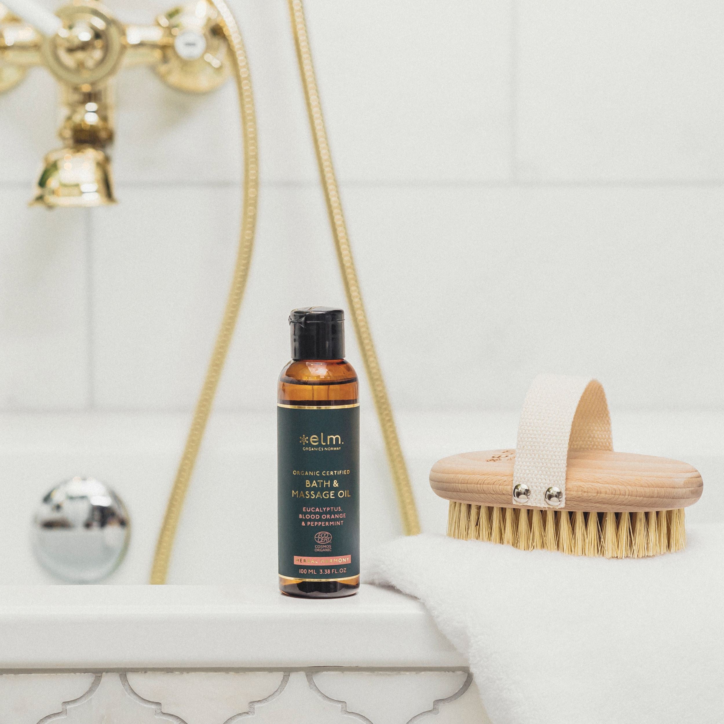Dry brushing the skin, steaming the room - the skin's pores open. The body is so receptive to what we put on, eat and drink. With Elm Organics you can be sure that you are giving yourself pure organic well-being - inside and out.