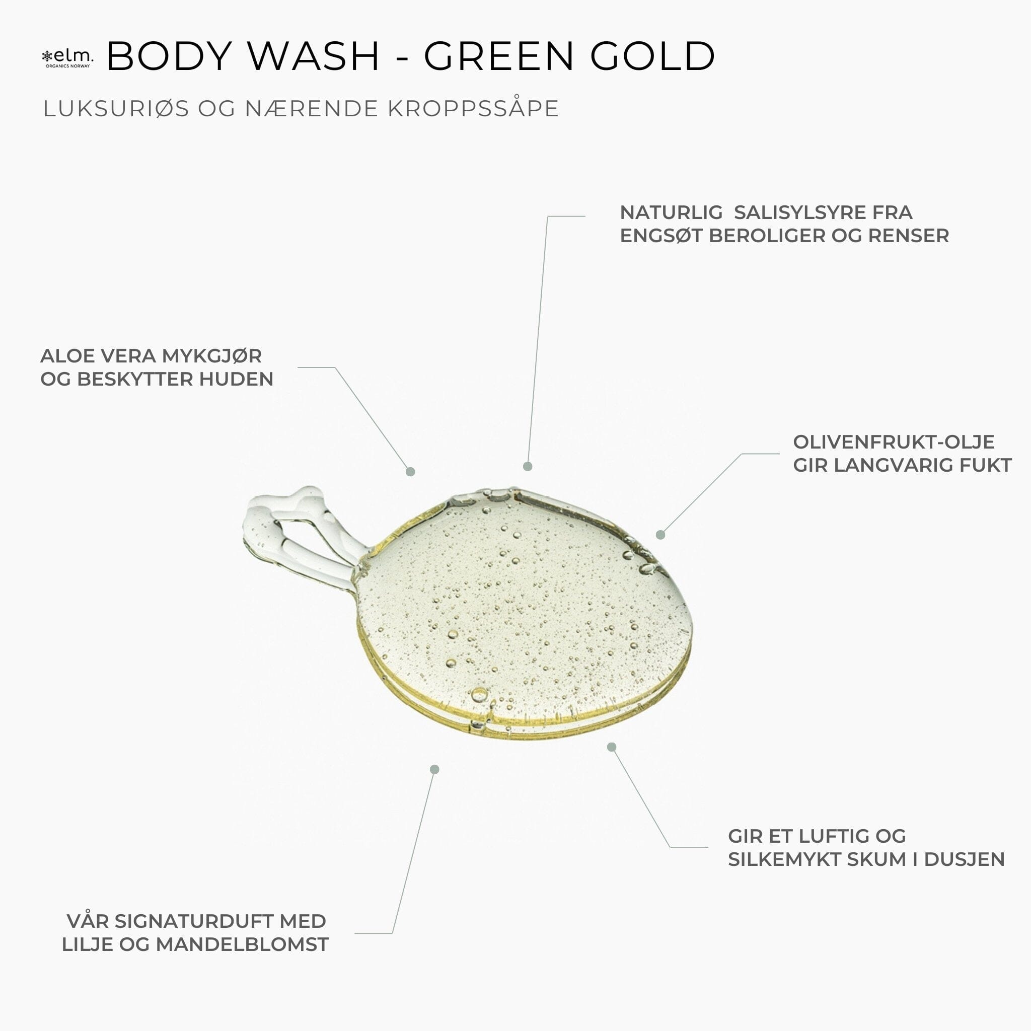 Green Gold Body Wash is certified organic, 100% vegan and cruelty-free, biodegradable and made from high-quality ingredients, ensuring your and nature's health.