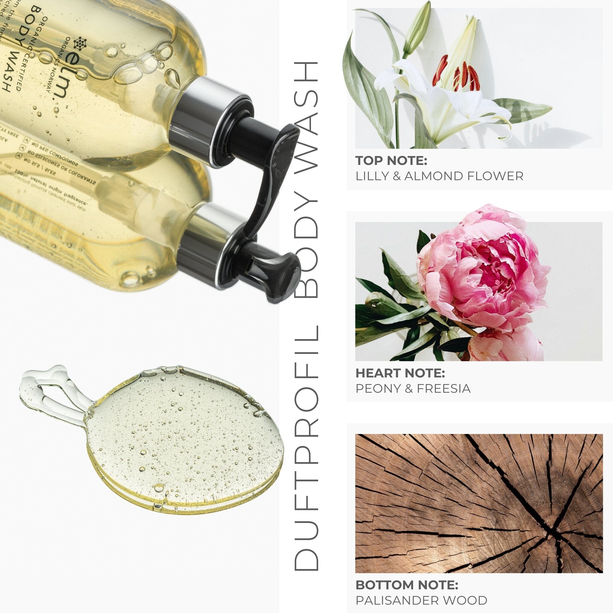 Experience pure luxury with our organic Body Wash, a gel-like body wash that gently cleanses and nourishes the skin. With its 100% natural signature scent of lily and almond blossom, developed by a French perfumer, it fills your bathroom with an aroma of well-being and natural ingredients. With this convenient 75 ml travel size, the body wash is easy to take with you on the go or in your gym bag, so you can always experience the same care on the go.