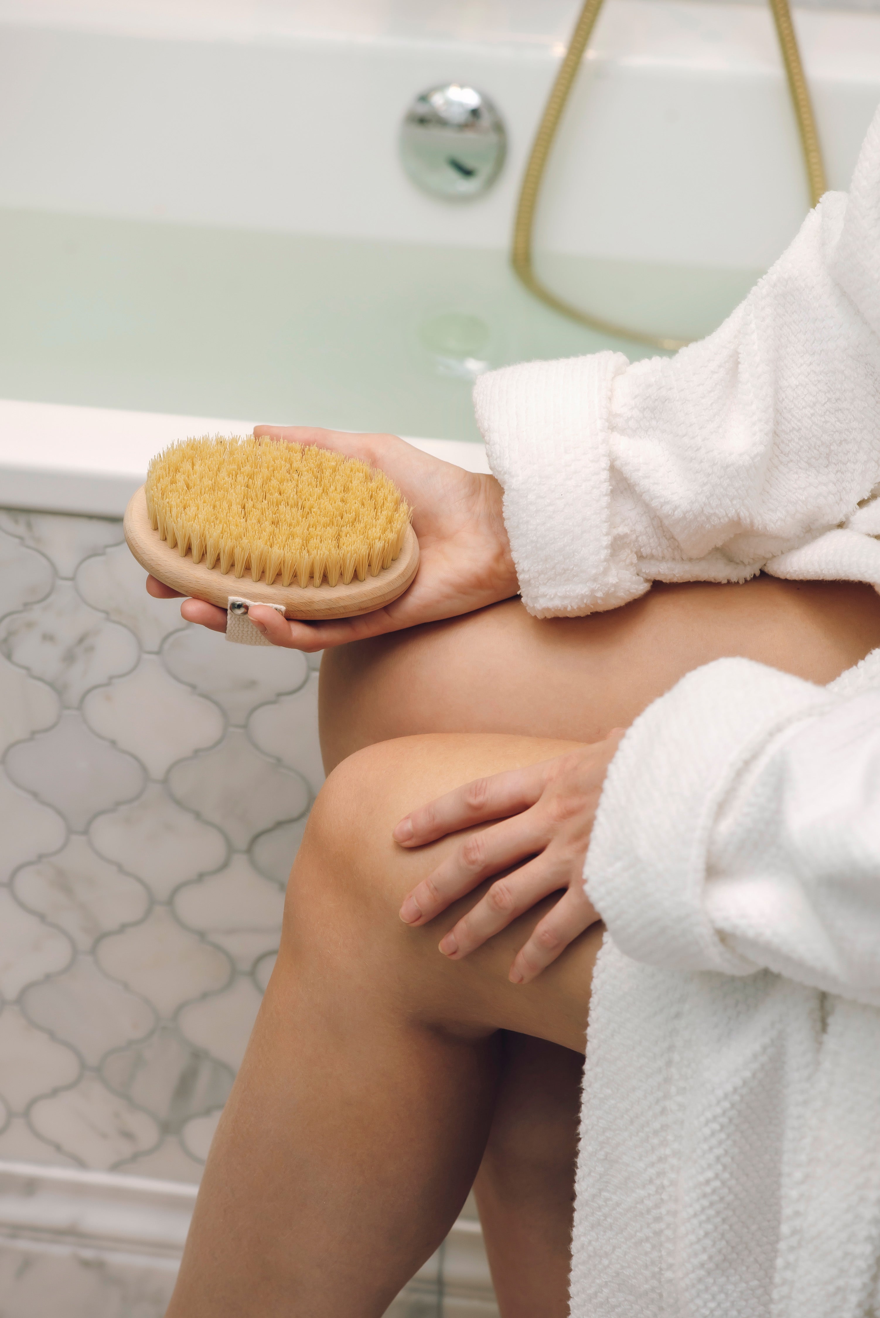 Tørrbørsting eksfolierer huden effektivt og aktiverer lymfesystemet vårt. Dette kan resultere i en mer glødende hud, mindre hovenhet og redusert synlighet av cellulitter.